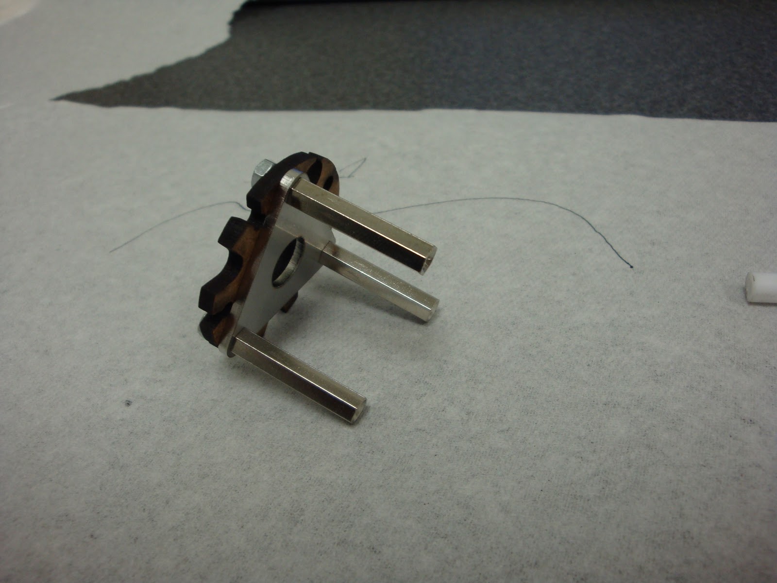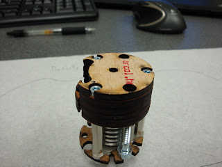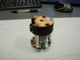 5. This is basically the last part, you're going to slide on 4 of those laser cut slices and then screw them on, two m4 screws will also go in, this is for mounting to the extruder, you will have one wood piece left over for mounting when you are done.